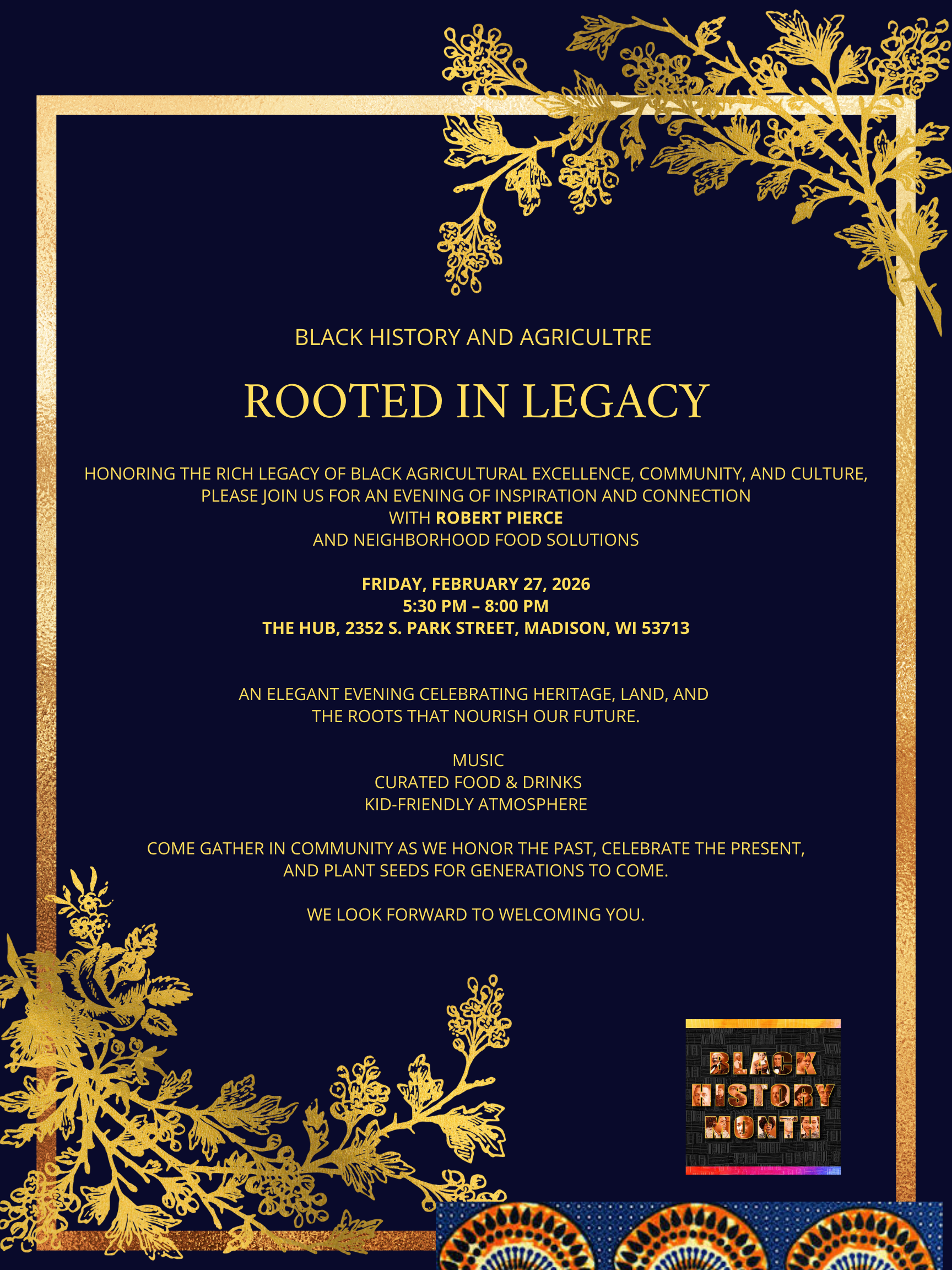 Celebrate the history of Black Farmers and learn ways to support Madison’s very own, Robert Pierce, in his efforts to train the next generation of Black and Brown farmers